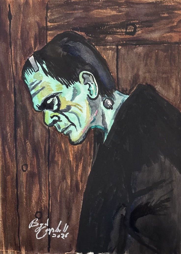 In the original credits for “Frankenstein”, the role of the creature is listed as being played by “?” In the Sequel, “Bride of Frankenstein,” they just had him listed as “Karloff.” Most of the makeup was accomplished by soaking cotton in collodion. There were no molds. The entire makeup was resculpted every day from reference drawings and photos.